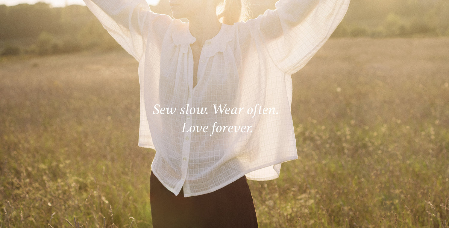 Timeless, classic, and versatile - our patterns are made to be sewn with care and worn again and again. Inspired by vintage silhouettes and refined techniques, each design invites you to slow down and create something lasting. Sustainability is part of that process. We offer projector files and smart Print layout guides to help reduce waste.