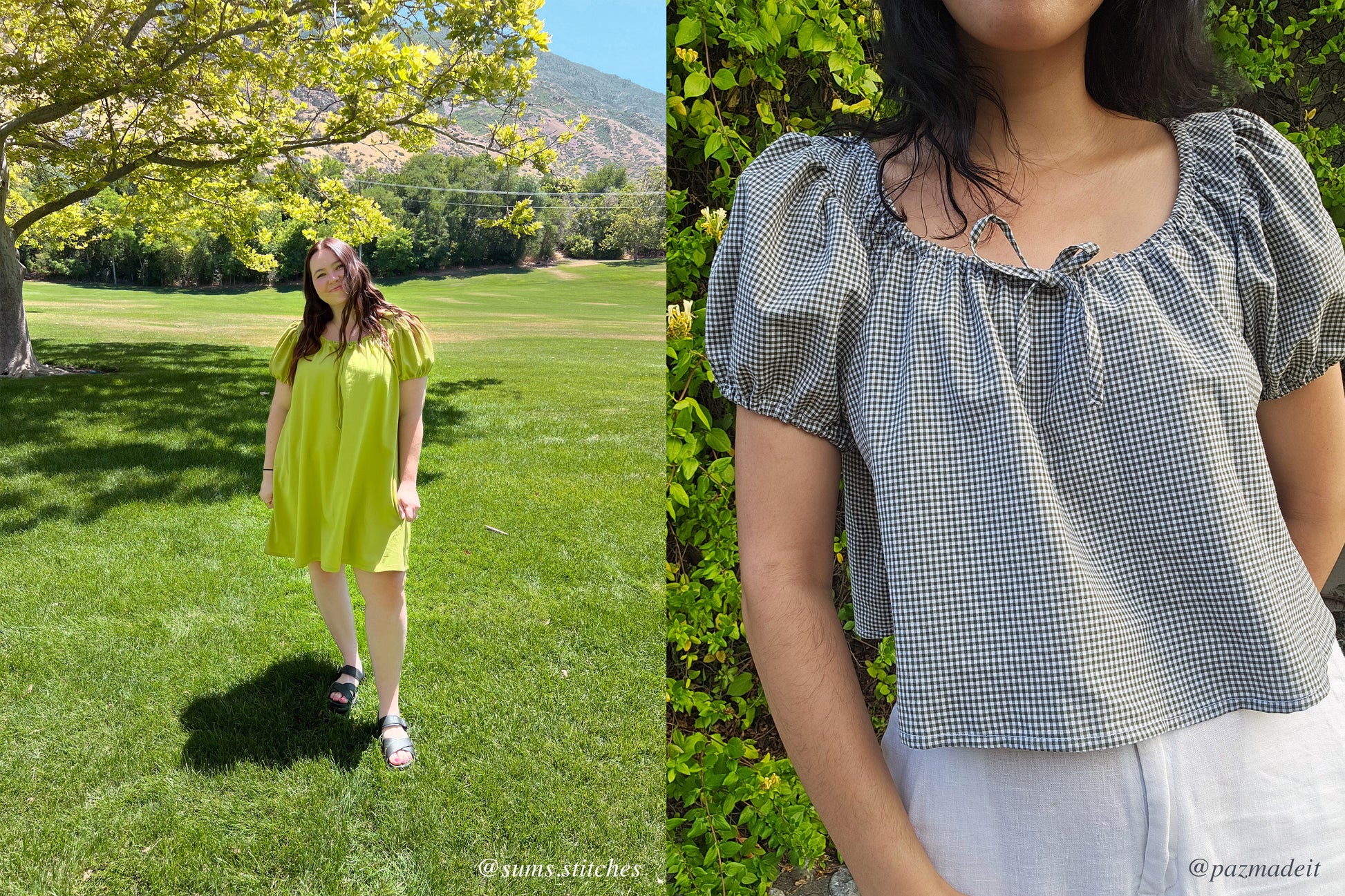 The Chloe Dress & Top is designed to be beginner-friendly, with additional views that let you grow your sewing skills at your own pace. You'll sew an adjustable neckline channel using a bias facing, bias-bound armholes, and a fabric tie. If you choose View B, you'll also sew a fold-over button placket, adding an extra level of skill.